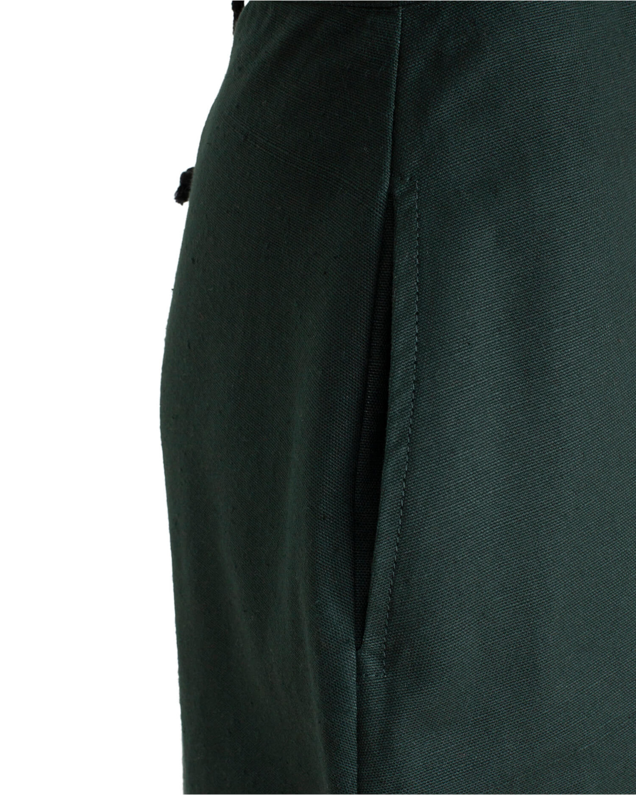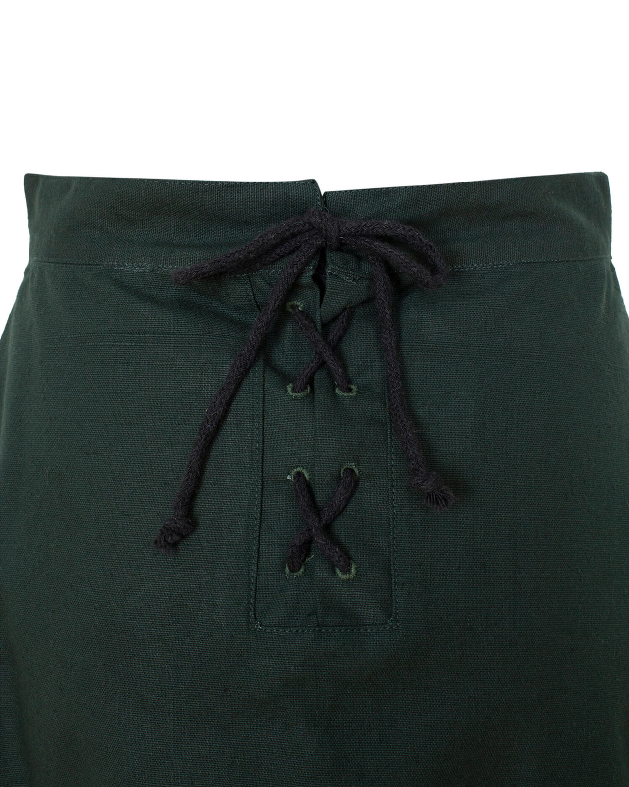 Spódnica wiązana jest z tyłu za pomocą troczka, co pozwala łatwo dopasować ją do sylwetki. Rozcięcia po bokach zwiększają swobodę ruchów, co ma szczególne znaczenie podczas intensywnych dni na LARPach czy festiwalach. Ukryte kieszenie w szwach bocznych dodają funkcjonalności, pozwalając przechować drobiazgi niezbędne podczas gry czy wędrówki.