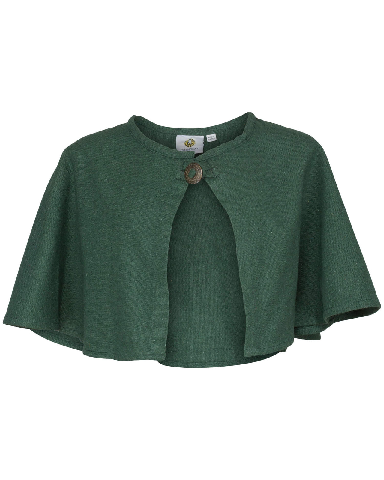 - Krótka peleryna zapinana z przodu na guzik. Chroni przed deszczem i chłodem, a jednocześnie stanowi stylowe uzupełnienie wielu kostiumowych stylizacji.