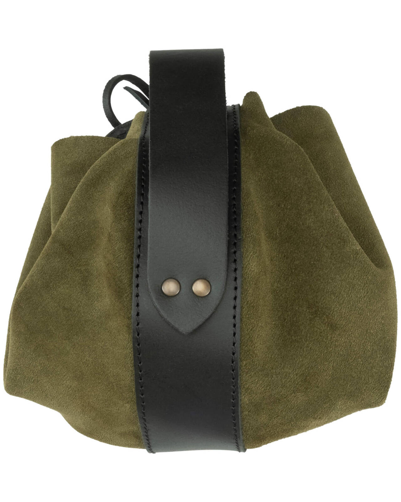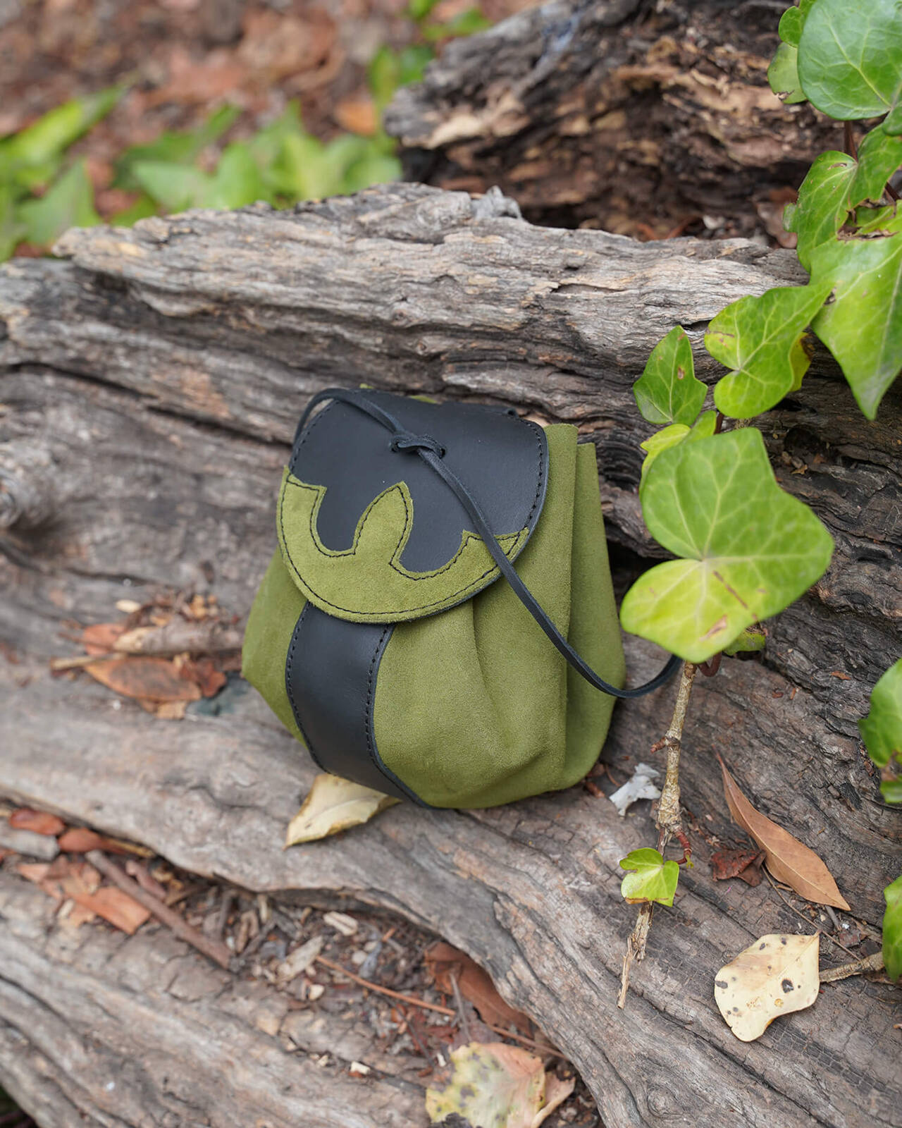• Praktyczny kształt sakiewki z klapą zamykaną na skórzany sznurek dla łatwego dostępu.