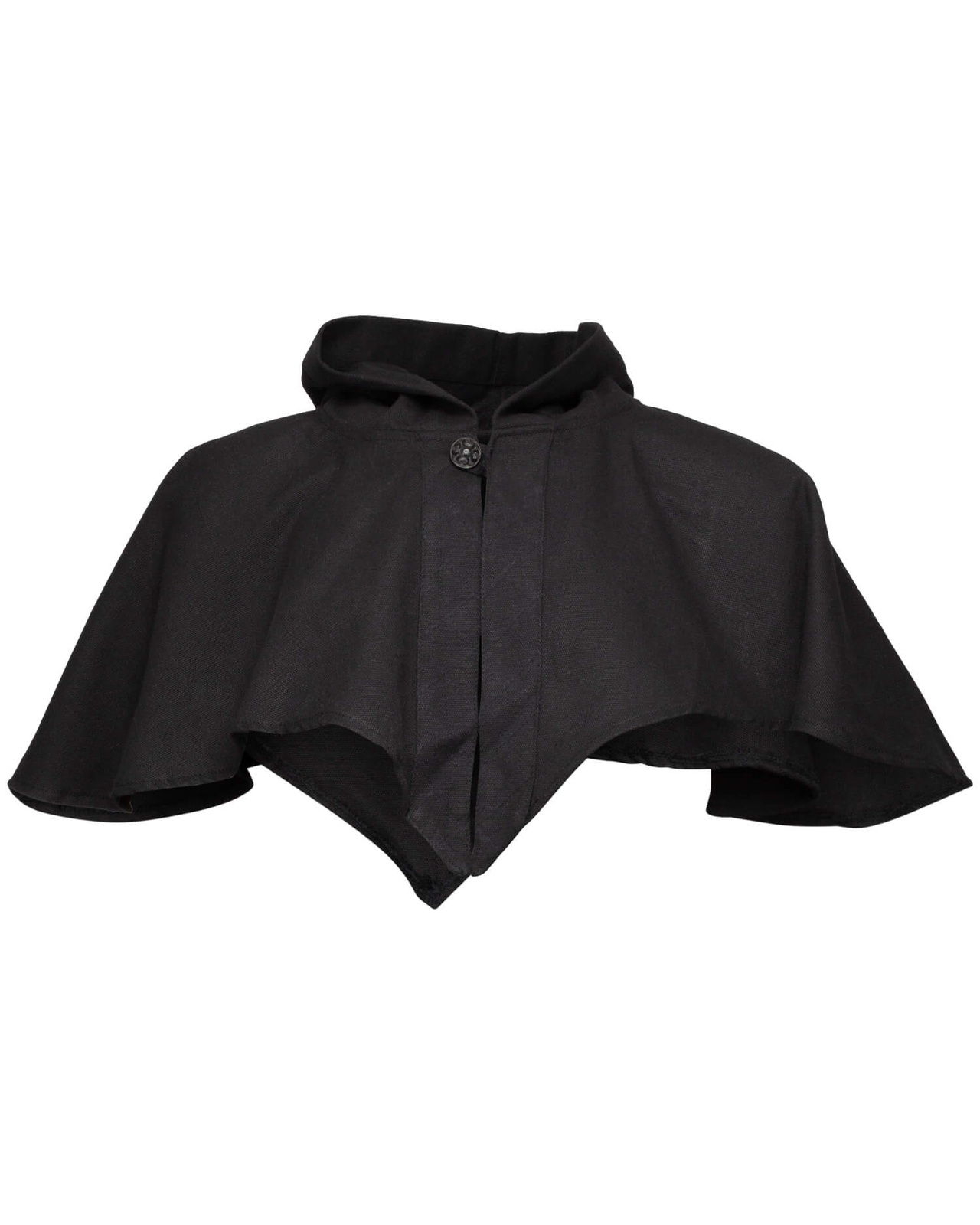Ceres Hood to praktyczny i stylowy element garderoby, który łączy w sobie prostotę z subtelną elegancją. Wykonany z wytrzymałego płótna bawełnianego, zapewnia ochronę przed wiatrem i chłodem, jednocześnie pozostając lekki i wygodny w noszeniu. Krótkie, szpiczaste wycięcie z przodu sprawia, że kaptur nie ogranicza ruchów, co czyni go doskonałym wyborem na LARPy.