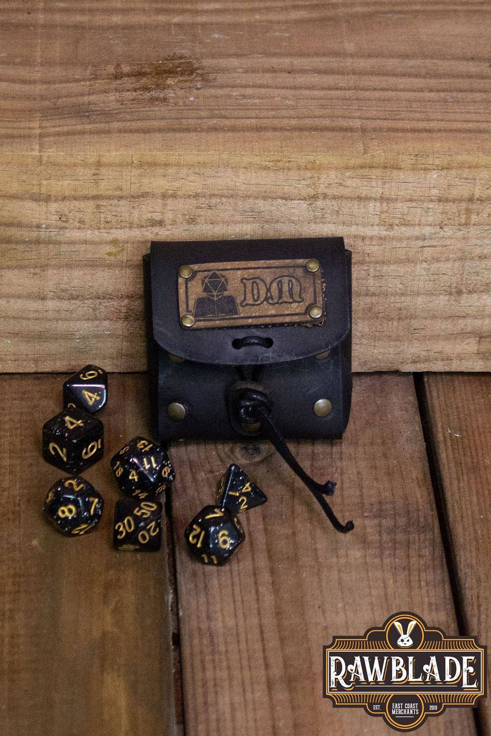 Mała sakiewka wykonana ręcznie z najwyższej jakości skóry, zamykana troczkiem z bawełnianego sznurka. Jej gabaryt mieści zestaw załączonych siedmiu kości RPG w różnych kolorach w zależności od modelu nawiązującego do klasy czy rasy.