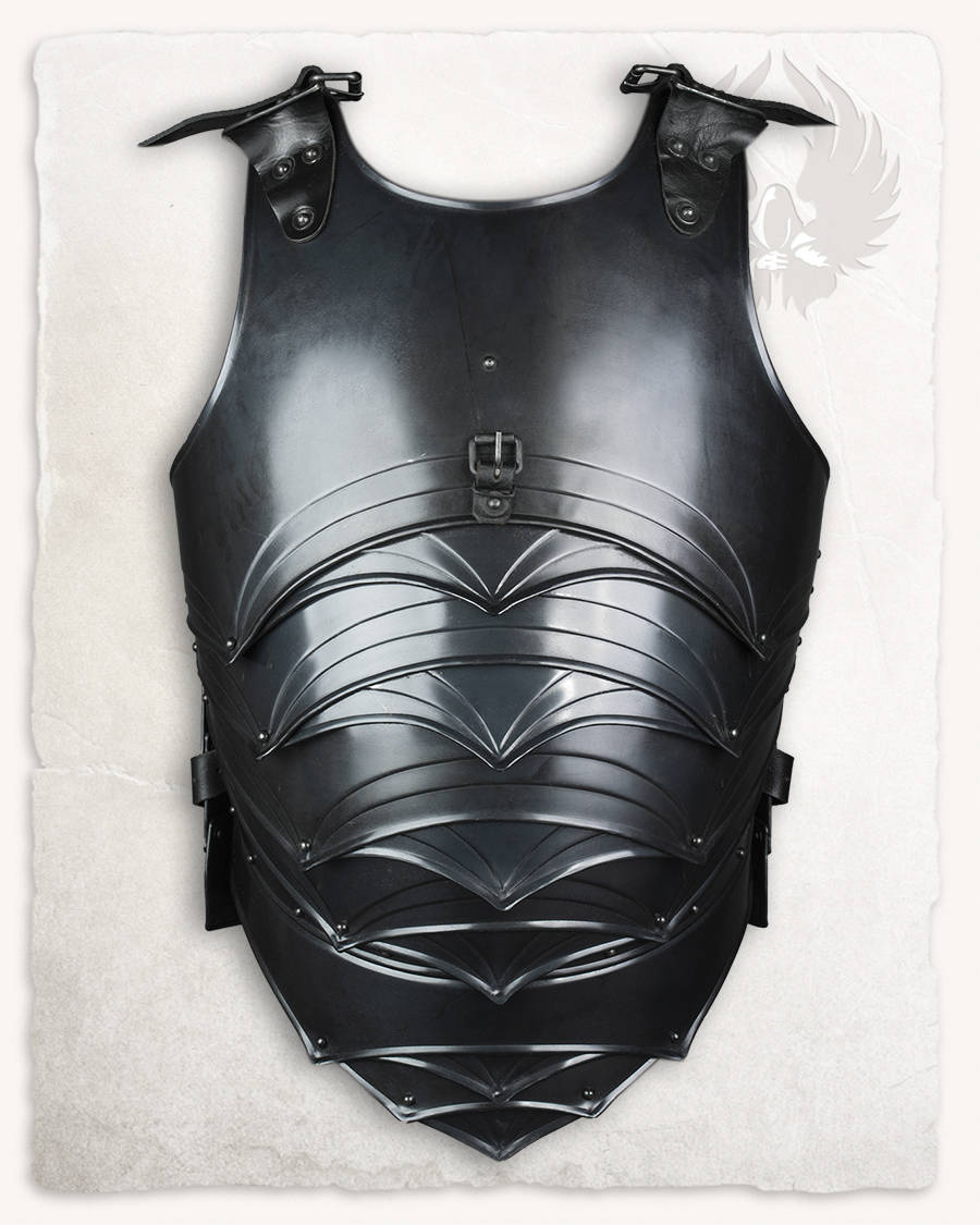 - Pancerz: stylizowana przyciemniana stal (z uwagi na ręczne wykonanie poziom przyciemnienia jest różny, w praktyce najczęściej pancerze tego typu są zupełnie czarne). W środku malowany na czarno.