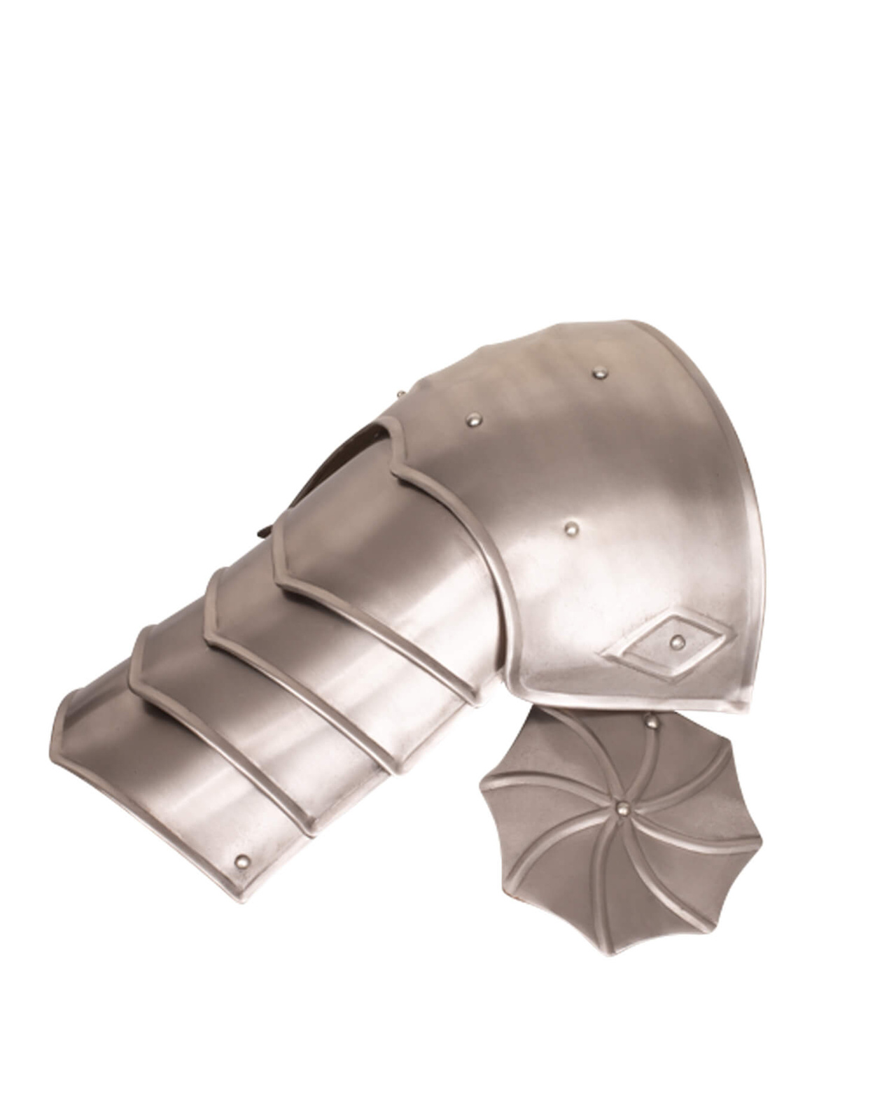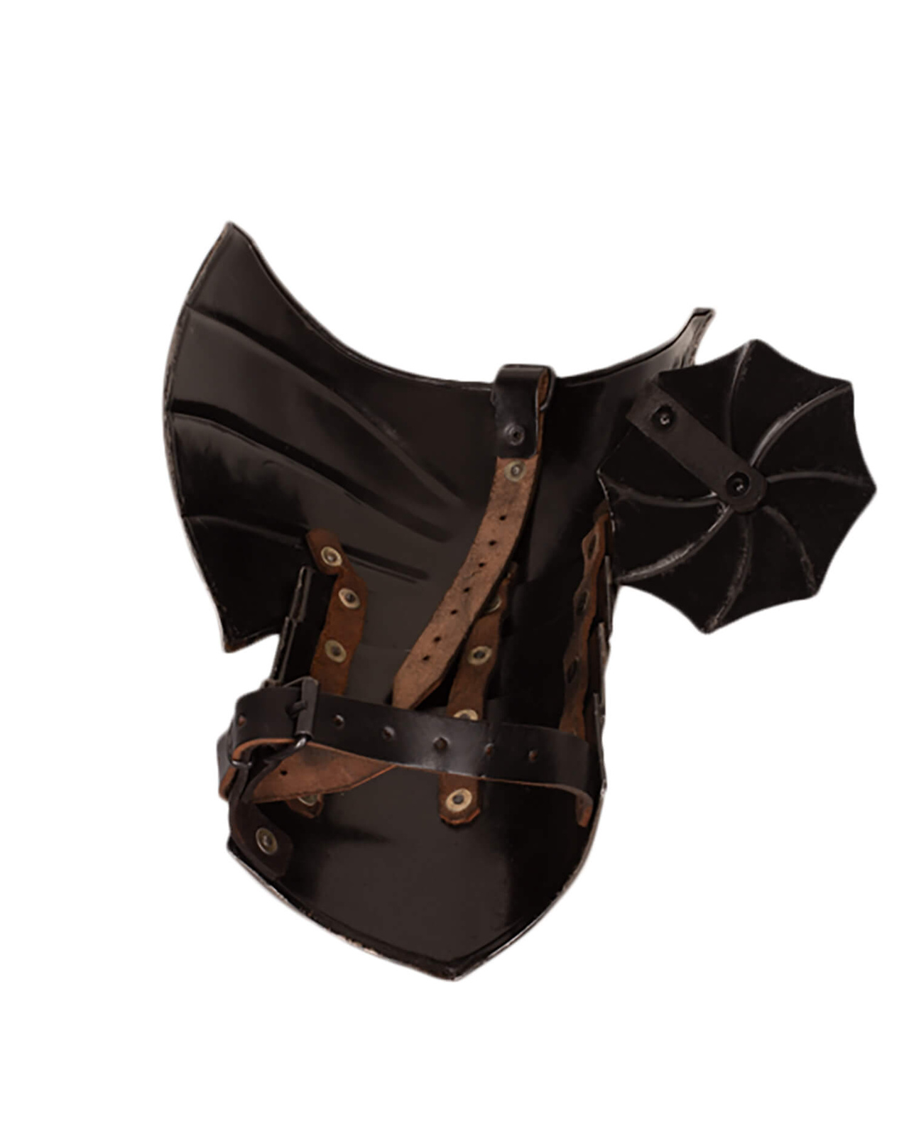 Naramienniki wykonane ze stali o grubości 1 mm w stylu fantasy. Zestaw zawiera dwa komplety naramienników, opach i tarczek opachowych. Opacha składa się z czterech zainstalowanych na naramienniku i połączonych skórzanym pasem płytek. Pachy chroni tarczka opachowa.