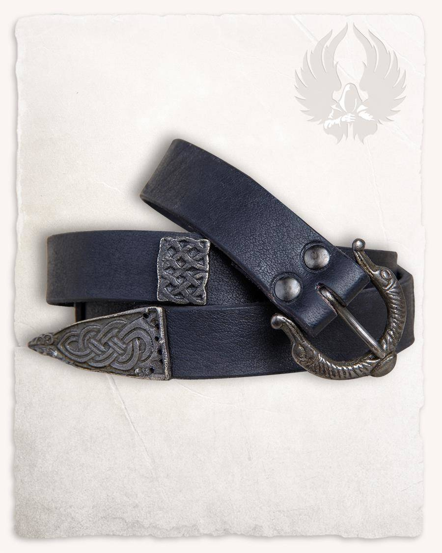 Einar Belt - skórzany pas z pięknymi okuciami oraz ozdobnymi prostokątnymi ozdobami.