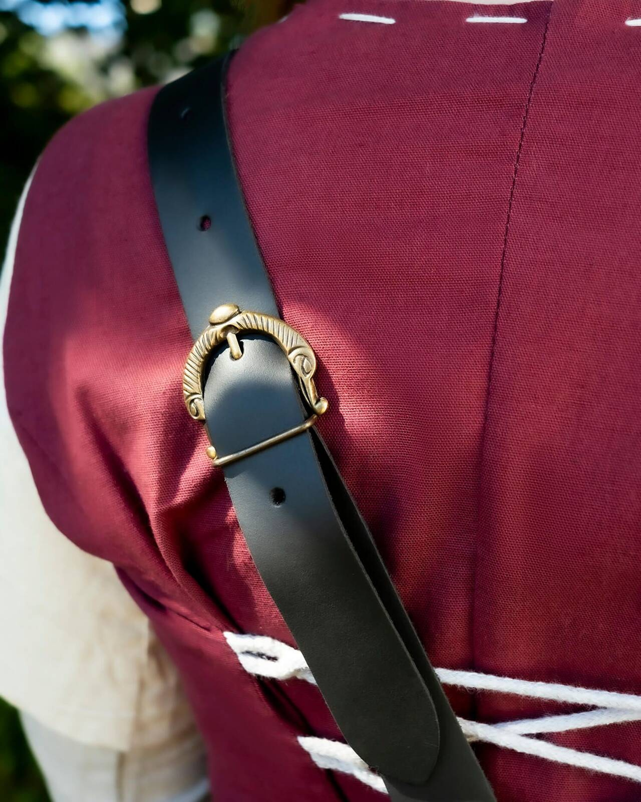 Torba na ramię „Escudero” to wyjątkowe połączenie elegancji i funkcjonalności, które zachwyca zarówno wyglądem, jak i praktycznością. Bogato zdobione okucia oraz misternie wykonane klamry nadają jej niepowtarzalny charakter, a tłoczenia w motywy roślinne na klapie zamykającej dodają artystycznego, historycznego uroku. Wnętrze torby jest podzielone na dwie komory, co zapewnia dużo miejsca na wszystkie niezbędne przedmioty. „Escudero” to idealny wybór dla osób ceniących tradycyjne rzemiosło i wygodę – zarówno podczas larpów, jak i w codziennym użytkowaniu..