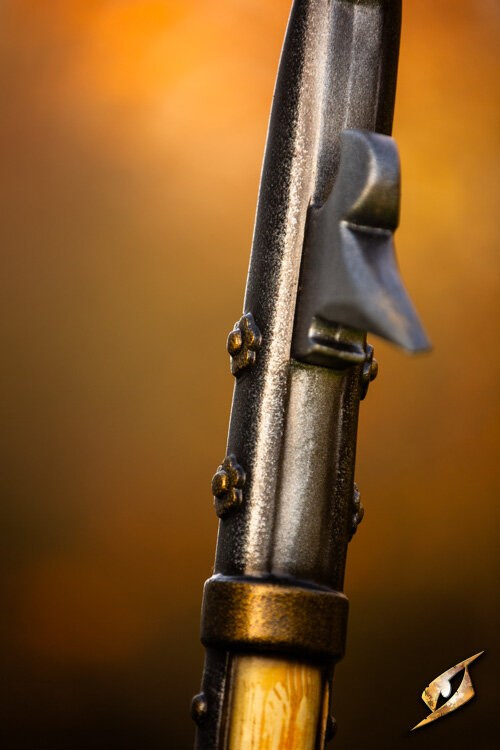 Element wykonany jest z wytrzymałej pianki, wzmocnionej rdzeniem z włókna szklanego, co zapewnia trwałość przy zachowaniu niskiej wagi. Powierzchnia pokryta lateksem została wykończona w sposób imitujący ciężką, zużytą stal, nadając całości realistyczny, bojowy wygląd. To idealny wybór dla każdego oddziału, który chce wyróżnić się na polu bitwy i nadać swojemu sztandarowi unikalny, inspirowany bronią charakter.