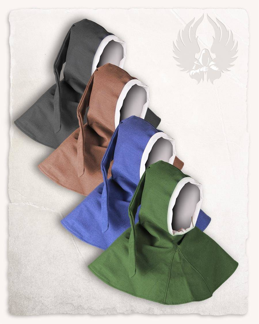 Klasyczny średniowieczny kaptur o stożkowatym kształcie, połączony ze starannie odszytą pelerynką z klinem. Stworzony dla młodych bohaterów. Uszyty z jednolitego płótna, z kontrastującą podszewką, która ładnie wygląda również wywinięta. W średniowieczu ubranie zawsze składało się z kilku warstw. Częścią ostatniego, wierzchniego okrycia były kaptury. Chroniły one przed wiatrem i deszczem, a czasem także przed wścibskimi spojrzeniami. Typowa forma kaptura Felix Childrens Hood sprawia, że pasuje on do większości postaci, o jakich może marzyć dorastający poszukiwacz przygód.