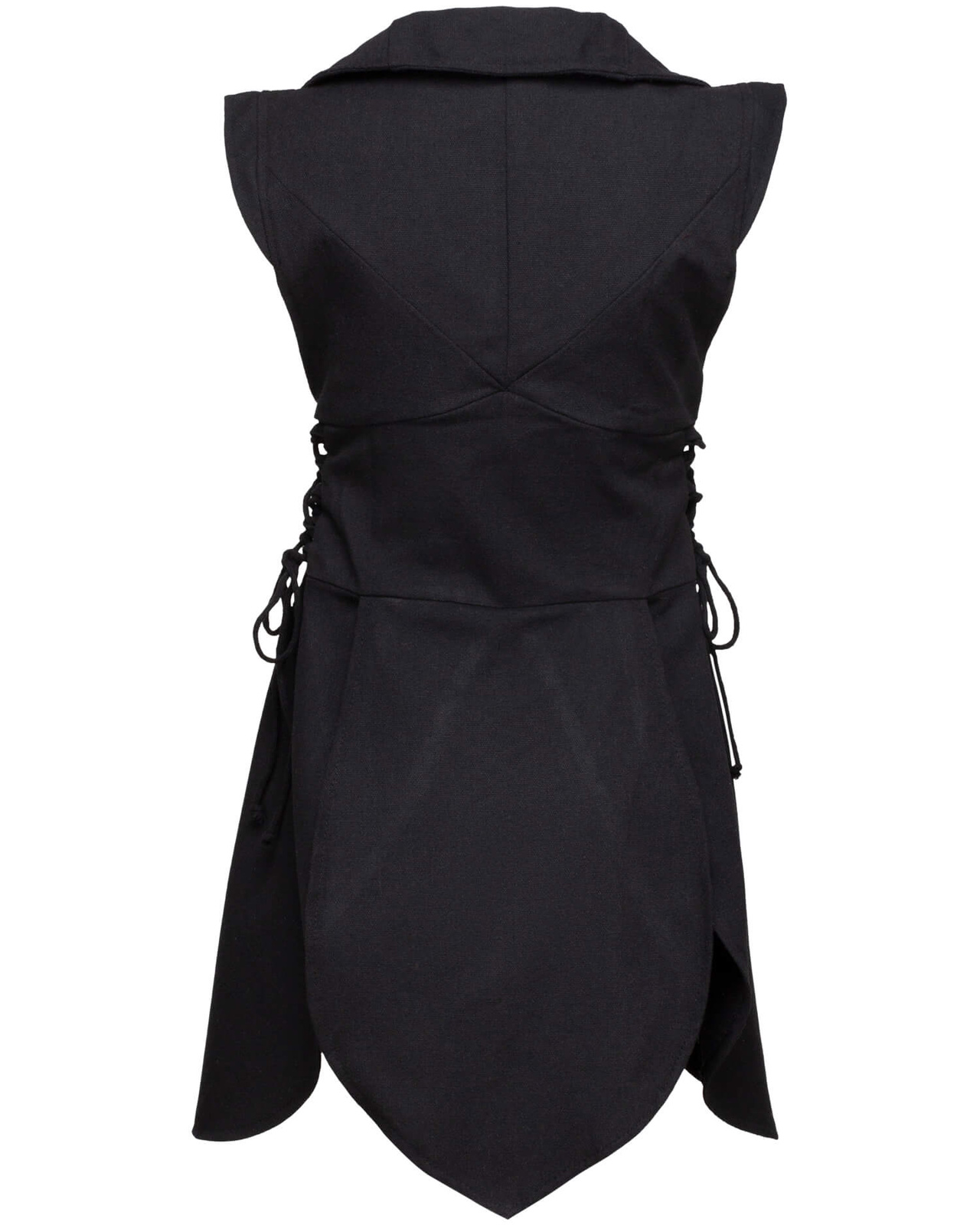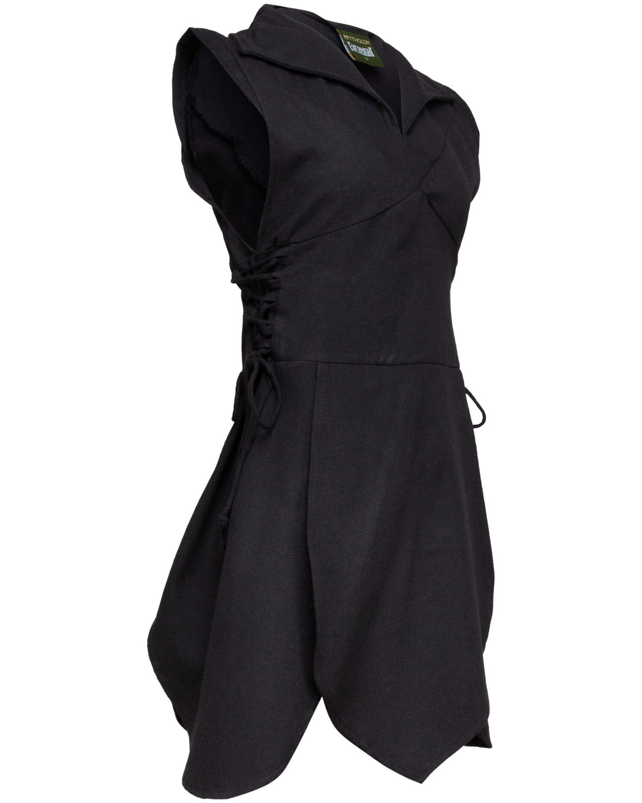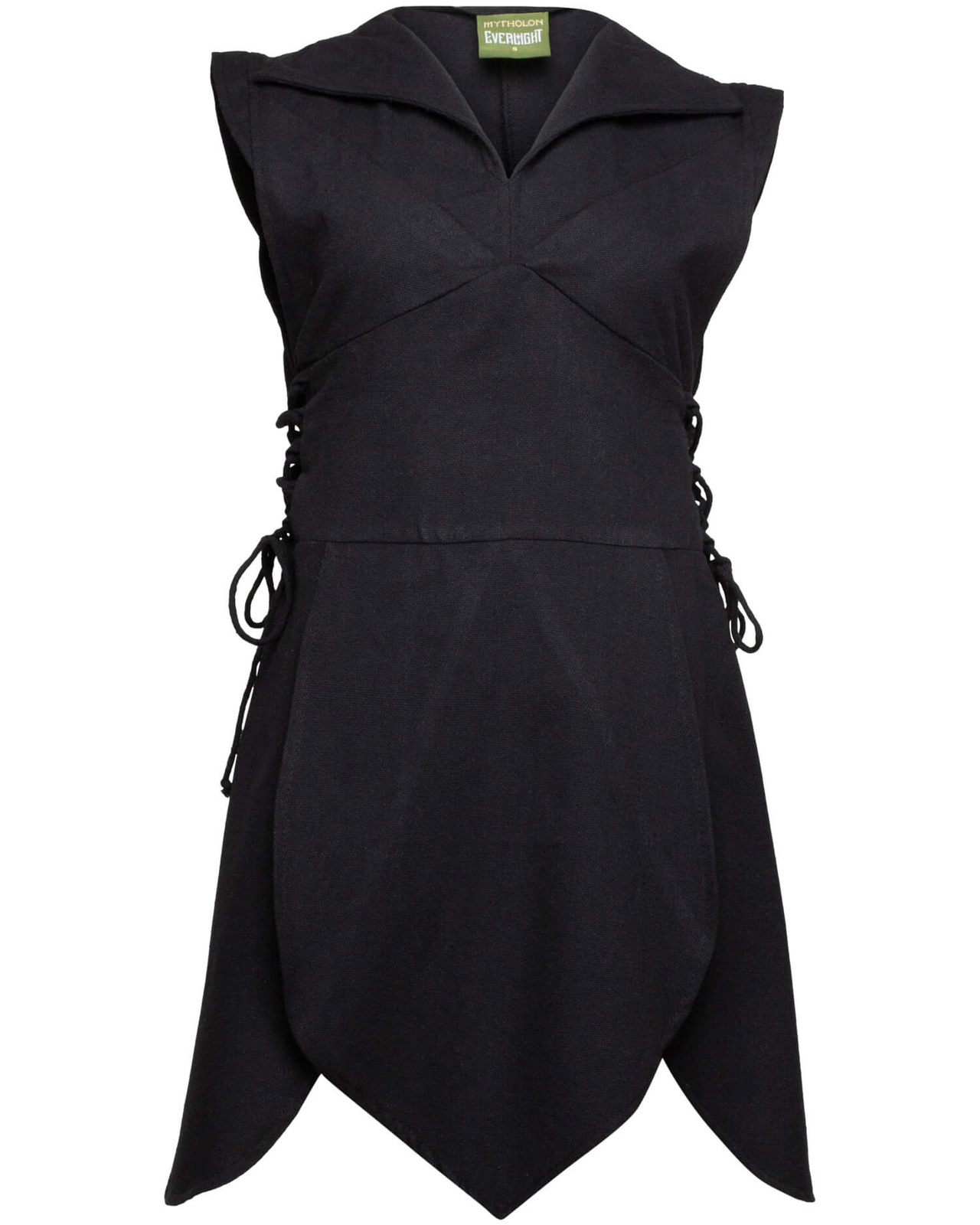 Rozcięcia po bokach oraz wiązanie umożliwiają indywidualne dopasowanie do figury, zapewniając jednocześnie komfort i swobodę ruchów – niezależnie od tego, czy towarzyszysz drużynie w podróży, czy bierzesz udział w rytuale magii. Tunika sprawdzi się doskonale w roli stroju elfiej kapłanki, wędrownej czarodziejki czy leśnej zwiadowczyni.