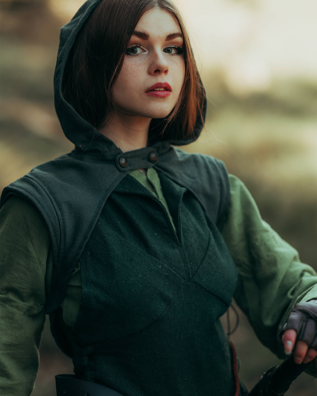 Rozcięcia po bokach oraz wiązanie umożliwiają indywidualne dopasowanie do figury, zapewniając jednocześnie komfort i swobodę ruchów – niezależnie od tego, czy towarzyszysz drużynie w podróży, czy bierzesz udział w rytuale magii. Tunika sprawdzi się doskonale w roli stroju elfiej kapłanki, wędrownej czarodziejki czy leśnej zwiadowczyni.