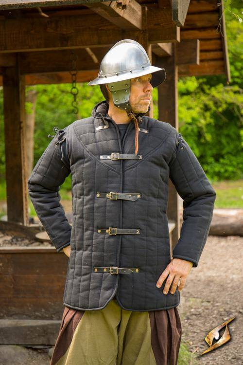 Zestaw zbroi. Pancerz przeznaczony do larpów (brak ostrych krawędzi mogących uszkodzić broń bezpieczną), wykonany ze skóry i stali galwanizowanej.
