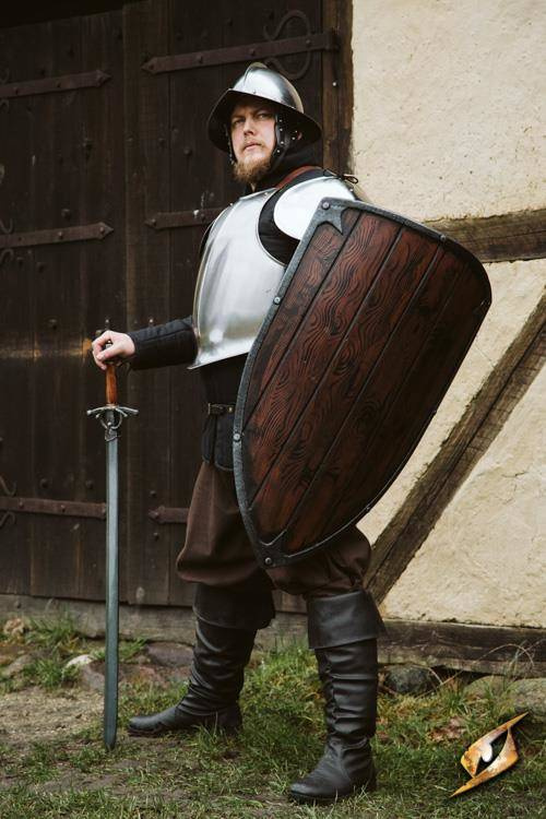 - Infantry Medium Deal - zestaw zbroi. Pancerz przeznaczony do larpów (brak ostrych krawędzi mogących uszkodzić broń bezpieczną), wykonany ze skóry i stali galwanizowanej.