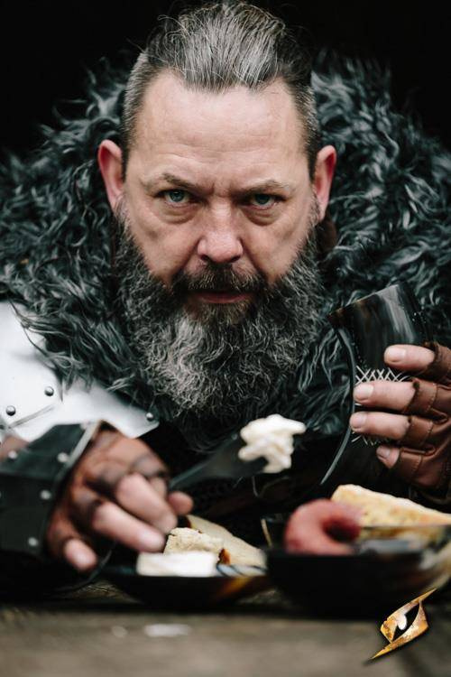 Naczynie do spożywania posiłków wykonane z naturalnego rogu. Powierzchnia rogu jest wypolerowana. Wnętrze poddano obróbce zapewniającej bezpieczne spożywanie żywności.