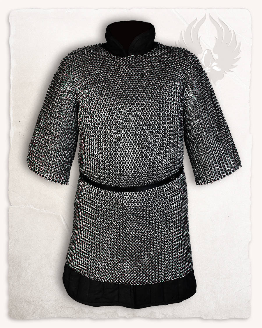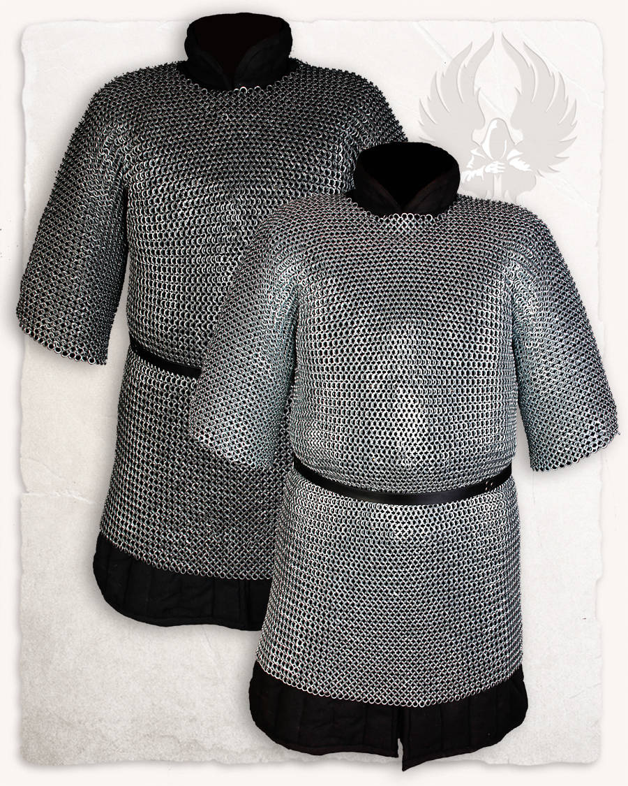Kolczugi w kolorze stalowym są surowe, zabezpieczone przed rdzewieniem olejem maszynowym. Błyszczące są galwanizowane cynkiem, co oprócz połysku daje także bardzo dobrą ochronę przed rdzewieniem. Wersje przyciemniane powstają po obróbce kwasowej, co wprawdzie również chroni przed rdzą, ale wymaga częstego oliwienia. - Dobra jakość i wytrzymałość.