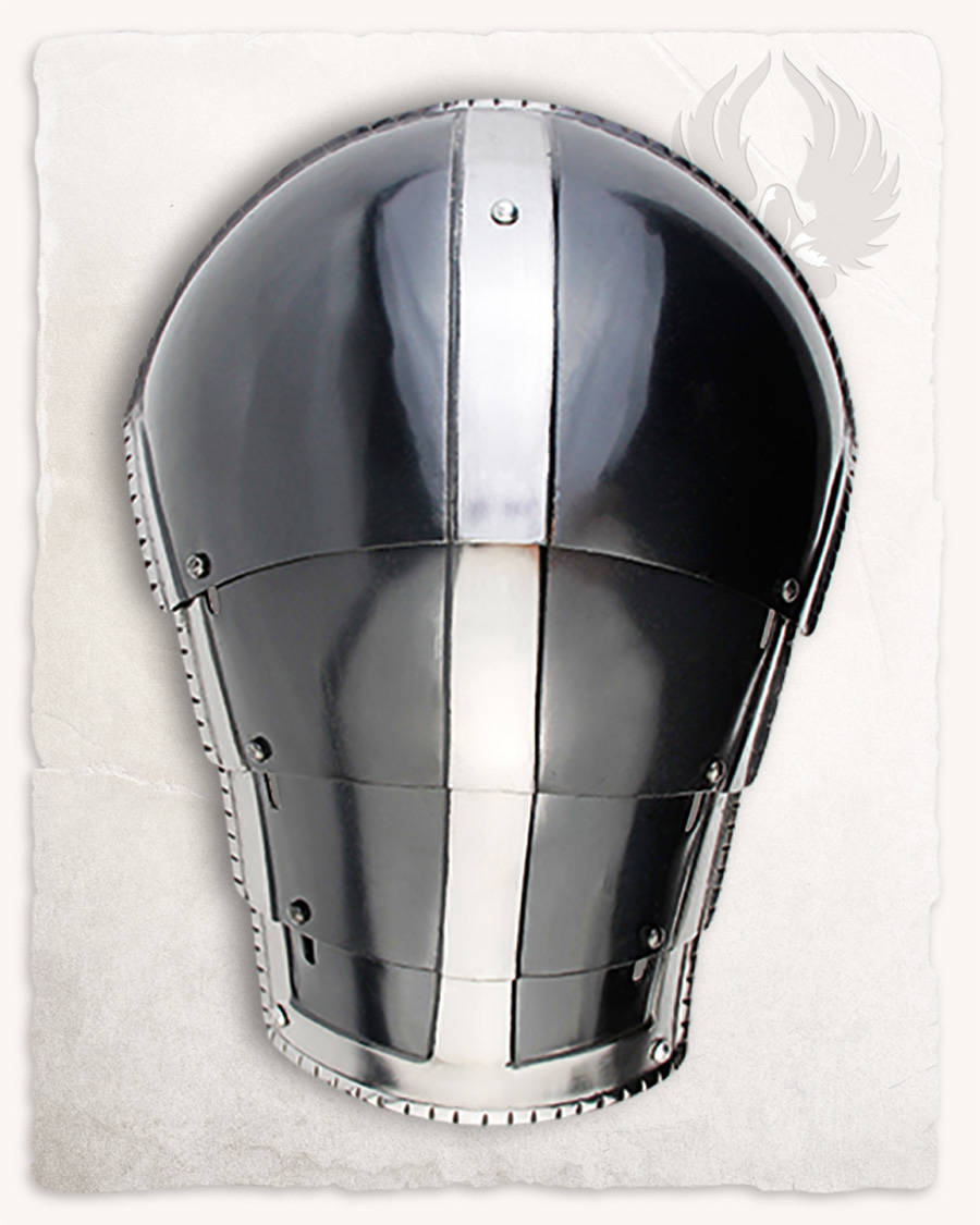 - Pancerz: stylizowana przyciemniana stal (z uwagi na ręczne wykonanie poziom przyciemnienia jest różny, w praktyce najczęściej pancerze tego typu są zupełnie czarne). W środku malowany na czarno.