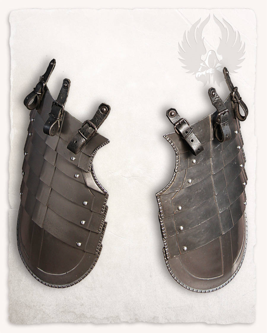 - Pancerz: stylizowana przyciemniana stal (z uwagi na ręczne wykonanie poziom przyciemnienia jest różny, w praktyce najczęściej pancerze tego typu są zupełnie czarne). W środku malowany na czarno.