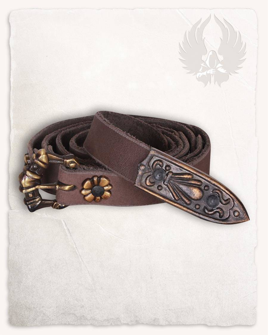 Leon Belt Slim - skórzany wąski pasek z mosiężnymi okuciami i ozdobami.