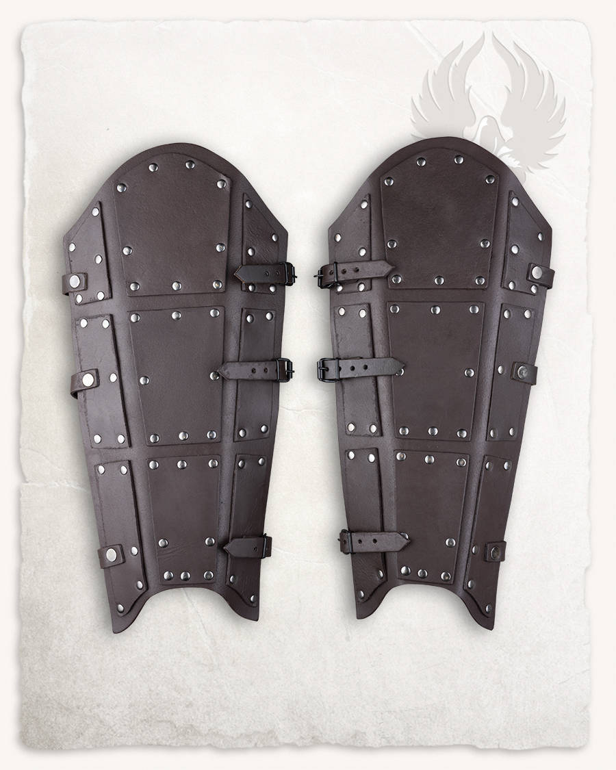 • Quintus Greaves Split Leather - Brown - skórzane nagolenniki.
