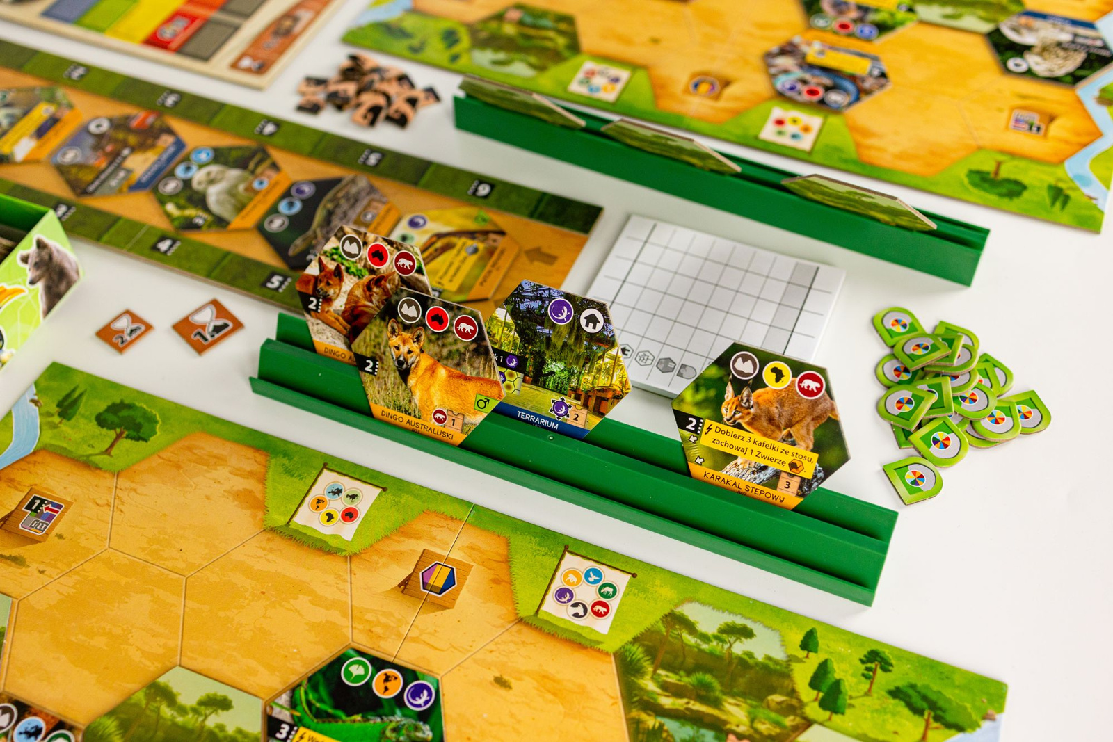 Rezerwat zawiera 135 dużych kafli zoo, 7 planszy, 5 plastikowych podstawek na kafelki… Wszystko to w sytym wydaniu w więcej niż przystępnej cenie.