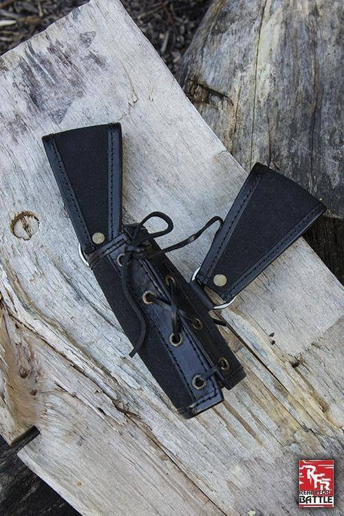 Duża zawieszka (żabka) o regulowanej szerokości z serii Ready for Battle. Parciana, gruba i solidna, obszyta skórą. Przeznaczona do noszenia u pasa. Same mocowanie broni jest sznurowane, dzięki czemu można wyregulować szerokość zawieszki i dopasować do swojej broni.