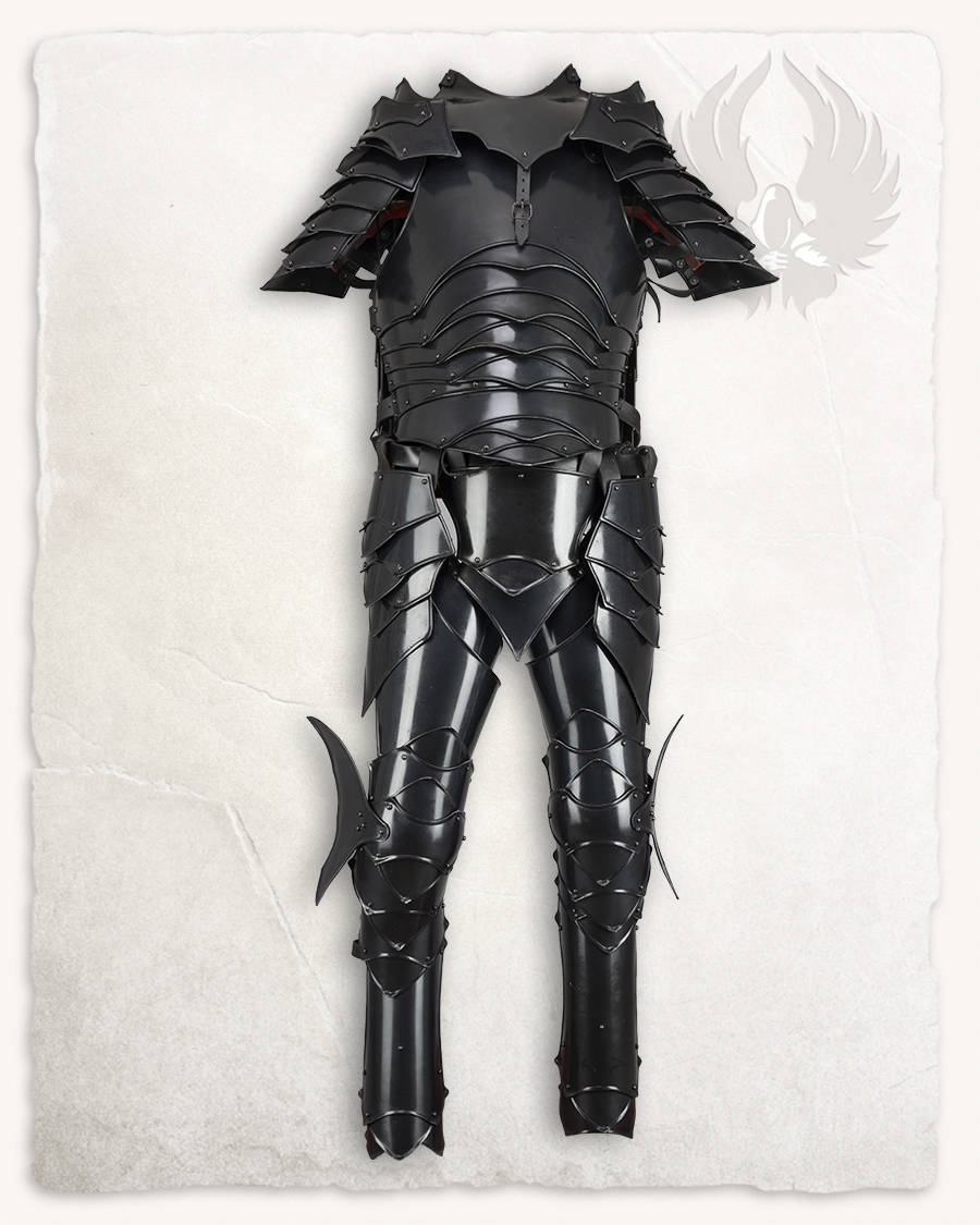 - Pancerz: stylizowana przyciemniana stal (z uwagi na ręczne wykonanie poziom przyciemnienia jest różny, w praktyce najczęściej pancerze tego typu są zupełnie czarne). W środku malowany na czarno.