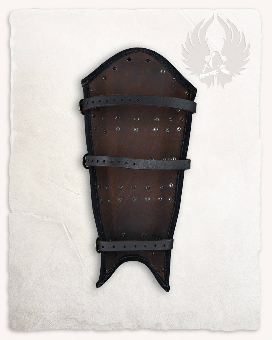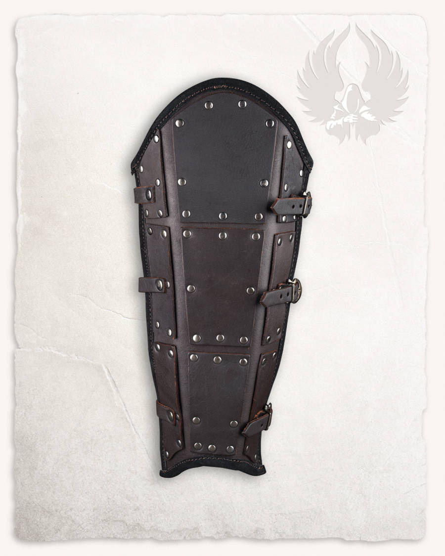 - Robert Greaves - Green - skórzane nitowane nagolenniki.