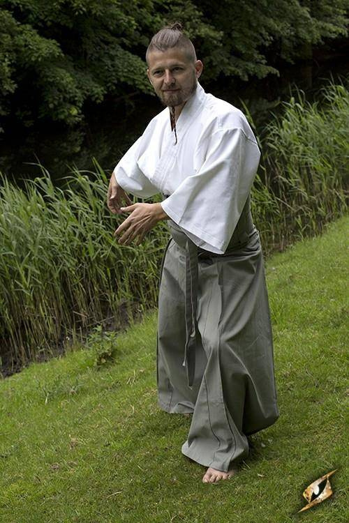 Hakama spodnie samuraja. Wzorowane na tradycyjnym ubiorze japońskim. Szerokie spodnie z wysoką talią, wiązane pasami materiału. Grube płótno oraz solidne szycie i porządne wykończenia, gwarantują dużą trwałość i wytrzymałość.