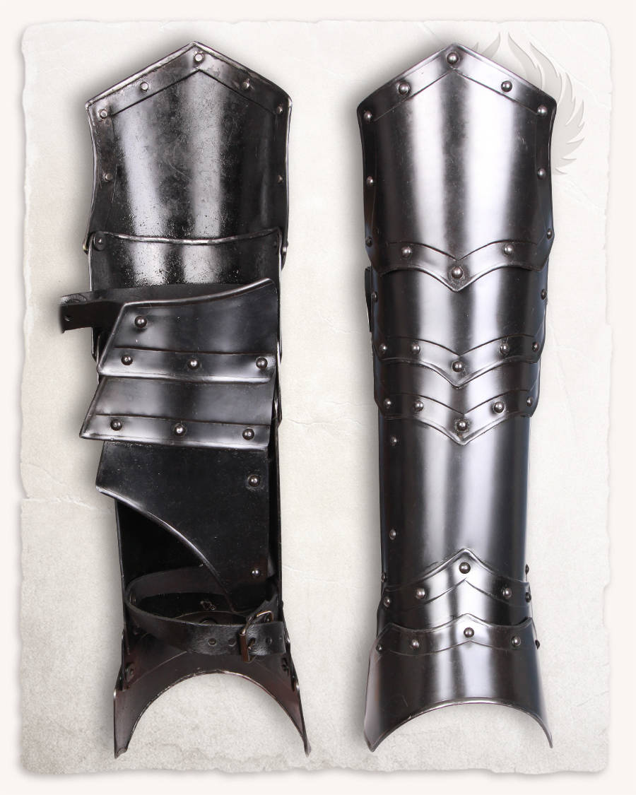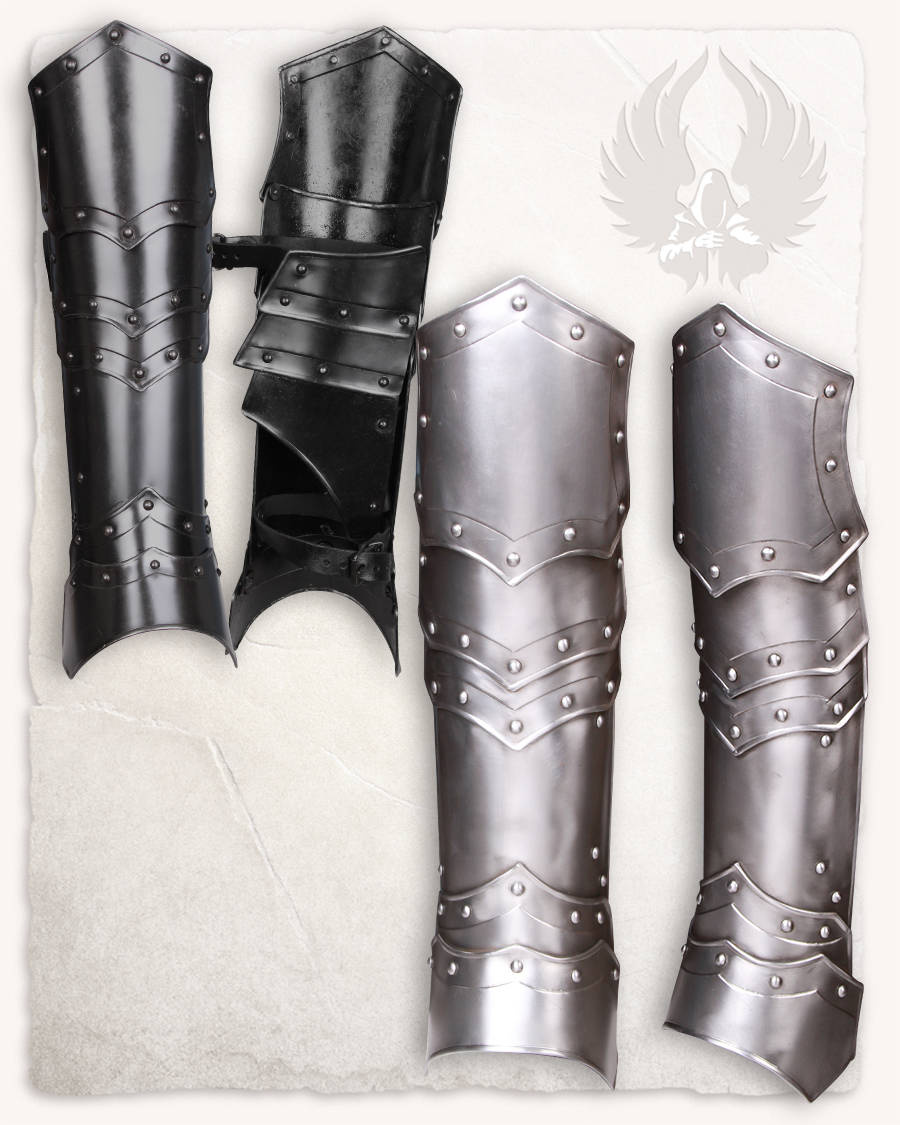 - Pancerz: stylizowana przyciemniana stal (z uwagi na ręczne wykonanie poziom przyciemnienia jest różny, w praktyce najczęściej pancerze tego typu są zupełnie czarne). W środku malowany na czarno.