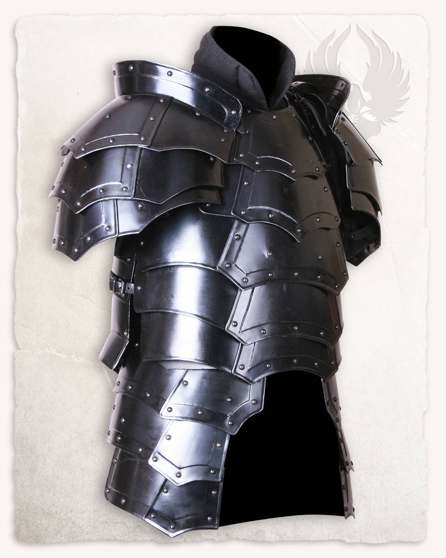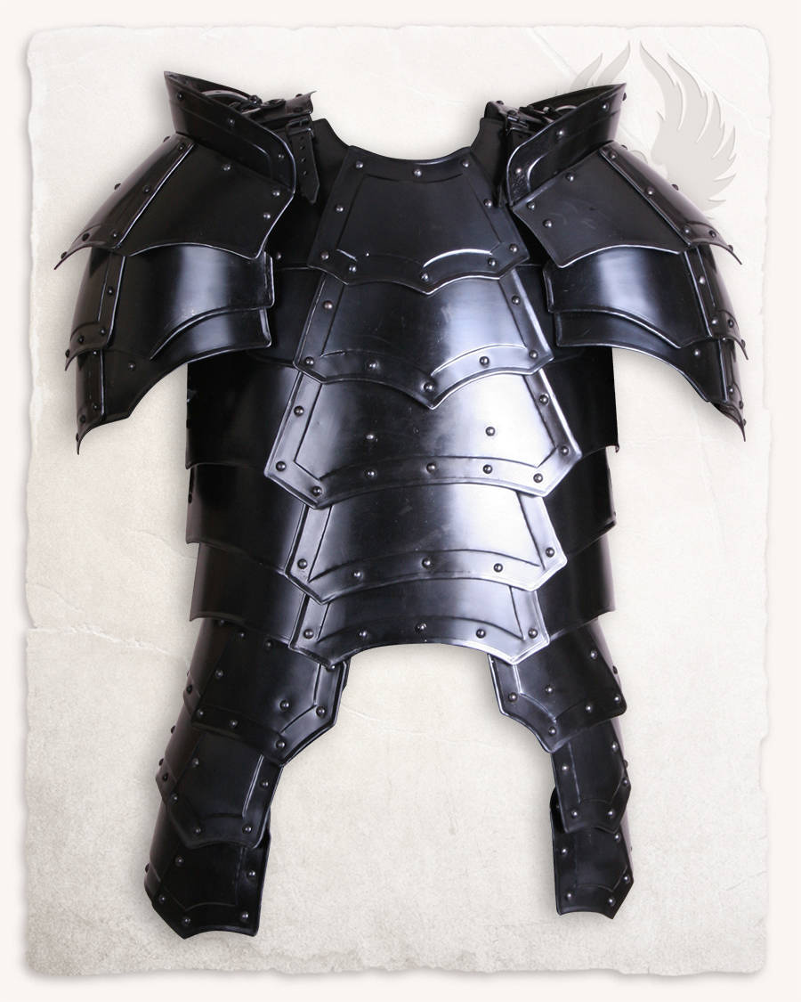 - Pancerz: stylizowana przyciemniana stal (z uwagi na ręczne wykonanie poziom przyciemnienia jest różny, w praktyce najczęściej pancerze tego typu są zupełnie czarne). W środku malowany na czarno.