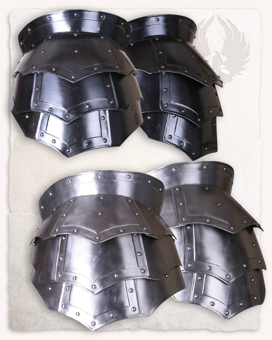 - Pancerz: stylizowana przyciemniana stal (z uwagi na ręczne wykonanie poziom przyciemnienia jest różny, w praktyce najczęściej pancerze tego typu są zupełnie czarne). W środku malowany na czarno.