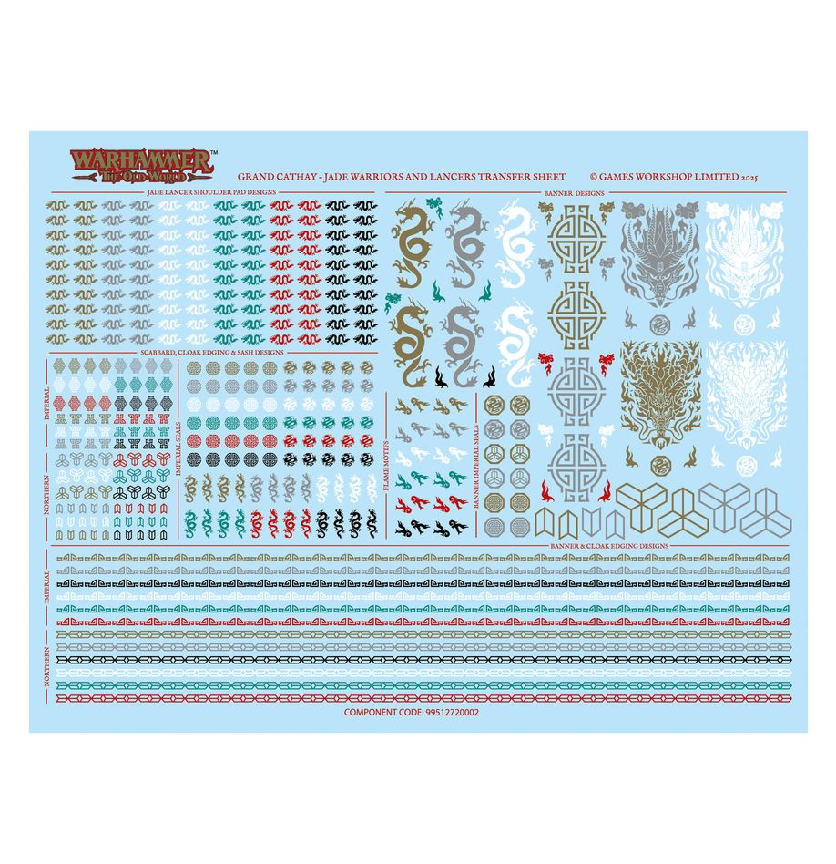 • 1 arkusz kalkomanii Grand Cathay Jade Warriors and Lancers Transfer Sheet (404 kalkomanie wodne)