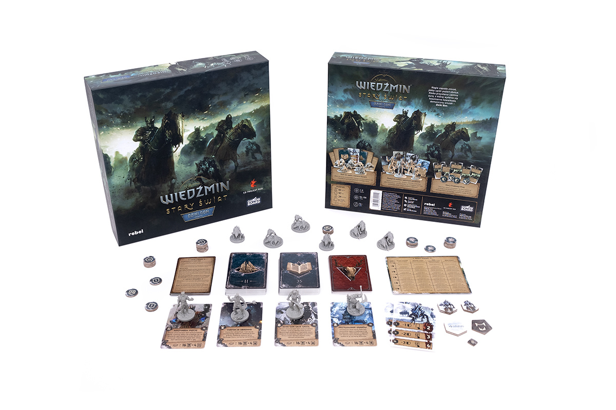 Wiedźmin: Stary Świat - Dziki Gon to rozszerzenie wprowadzające kooperacyjne wyzwanie dla wszystkich zasiadających przy stole wiedźminów. Podczas rozgrywek uczestnicy będą realizowali zadania i walczyli z potworami oraz ogarami Dzikiego Gonu, by ostatecznie doprowadzić do starcia z jednym z upiornych jeźdźców: Eredinem, Nithralem, Imlerithem albo Caranthirem. Jeśli w ostatniej rundzie zdołają go pokonać, zanim wszyscy wiedźmini zostaną powaleni, wspólnie zwyciężą. W przeciwnym razie (również wspólnie) poniosą klęskę i będą mogli podjąć wyzwanie ponownie.